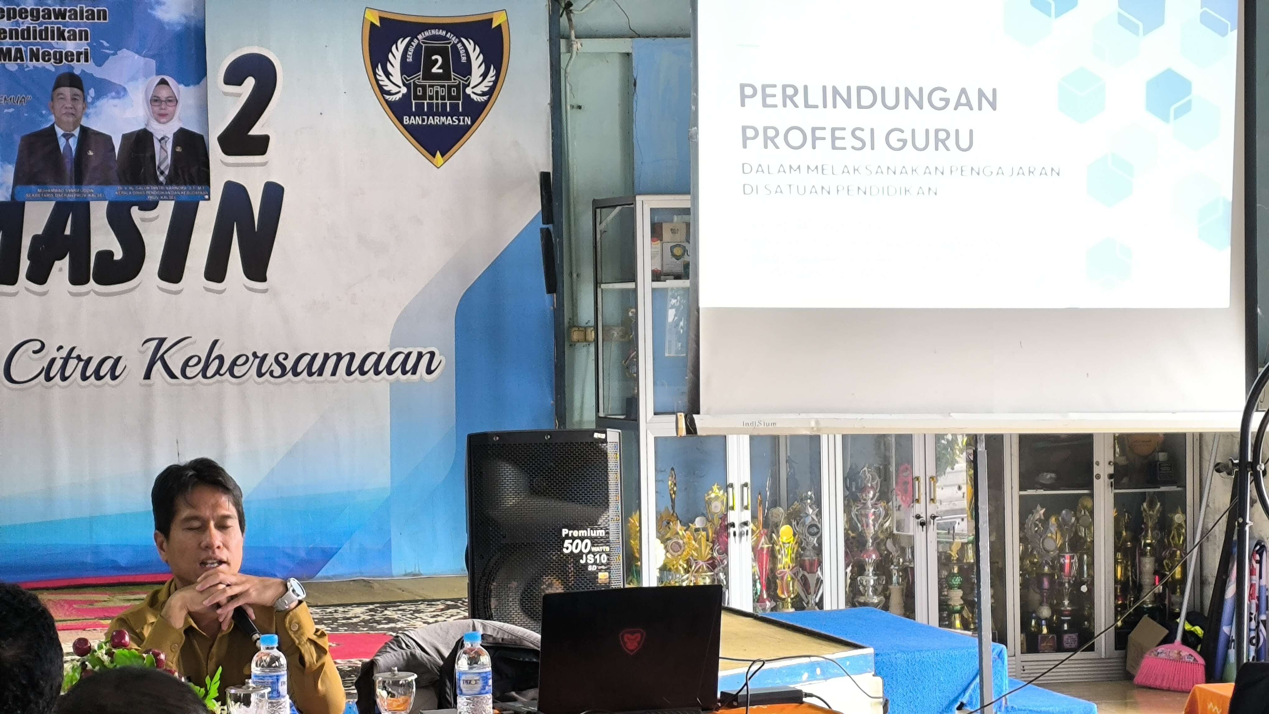 Kegiatan yang dilaksanakan pada Senin, 10 November 2025, pukul 09.00–12.00 WITA ini diikuti oleh hampir seluruh guru dan tenaga kependidikan SMAN 2 Banjarmasin. Sosialisasi menghadirkan narasumber Bapak Rosiadi Indrawan, S.H., M.H., selaku Kasi GTK SMA Dinas Pendidikan dan Kebudayaan Provinsi Kalimantan Selatan, dan Bapak Rifky, staf GTK.