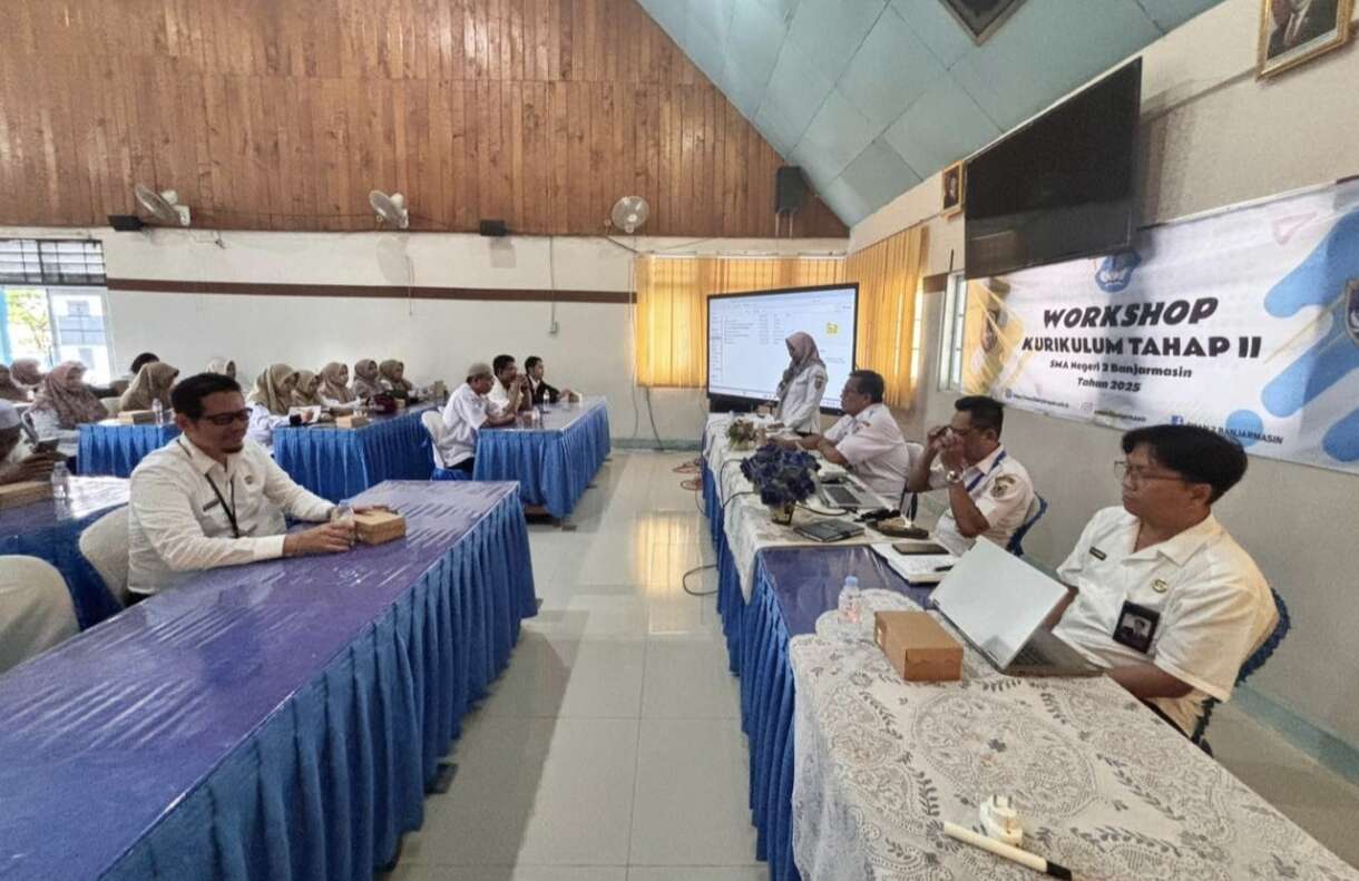 Banjarmasin — SMAN 2 Banjarmasin kembali melaksanakan Workshop Kurikulum Tahap II yang terbagi menjadi tiga gelombang, yaitu 12–13 November 2025, 17–18 November 2025, dan 19–20 November 2025. Seluruh kegiatan dipusatkan di Ruang Multimedia SMAN 2 Banjarmasin dengan menghadirkan pemateri internal dan pengawas sekolah.